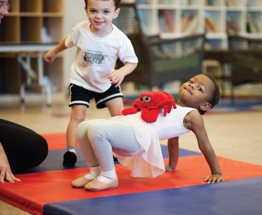 Kindergym® is designed to provide boys and girls, ages 3-5, with fun activities including floor gymnastics, tumbling, acrobatics, gross motor development, and movement education. Music appreciation and academic readiness skills are incorporated into each activity as our Kindergym® instructors work to build each child’s self-esteem and independence. Mats, low safe beams, and obstacle courses are utilized throughout the curriculum. The proper timing and use of this program should enhance the physical, social, emotional, and cognitive development of the children while building their sense of self and others.